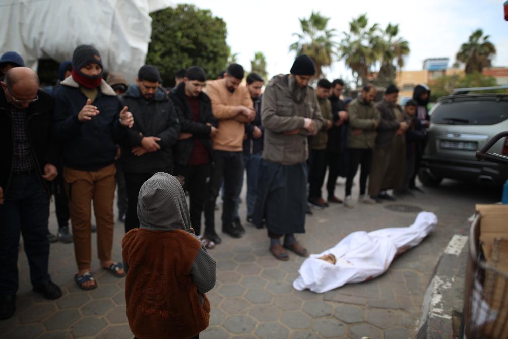 12月23日,在加沙地带代尔拜拉赫的一家医院,人们送别遇难者。新华社发