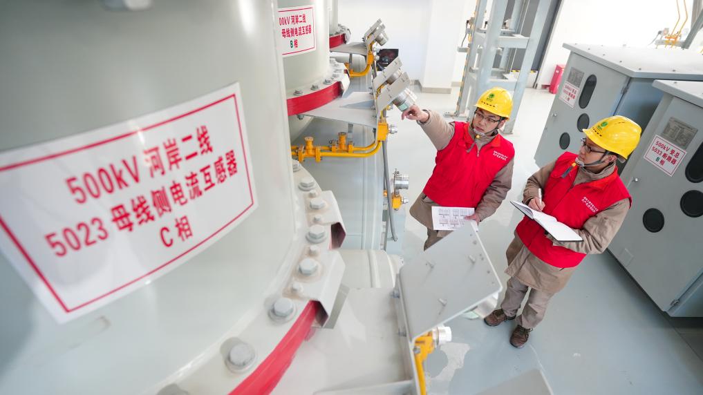 12月24日,大港500千伏输变电工程投产送电,国网天津电力工作人员检查1号主变压器运行状态。(受访单位供图)