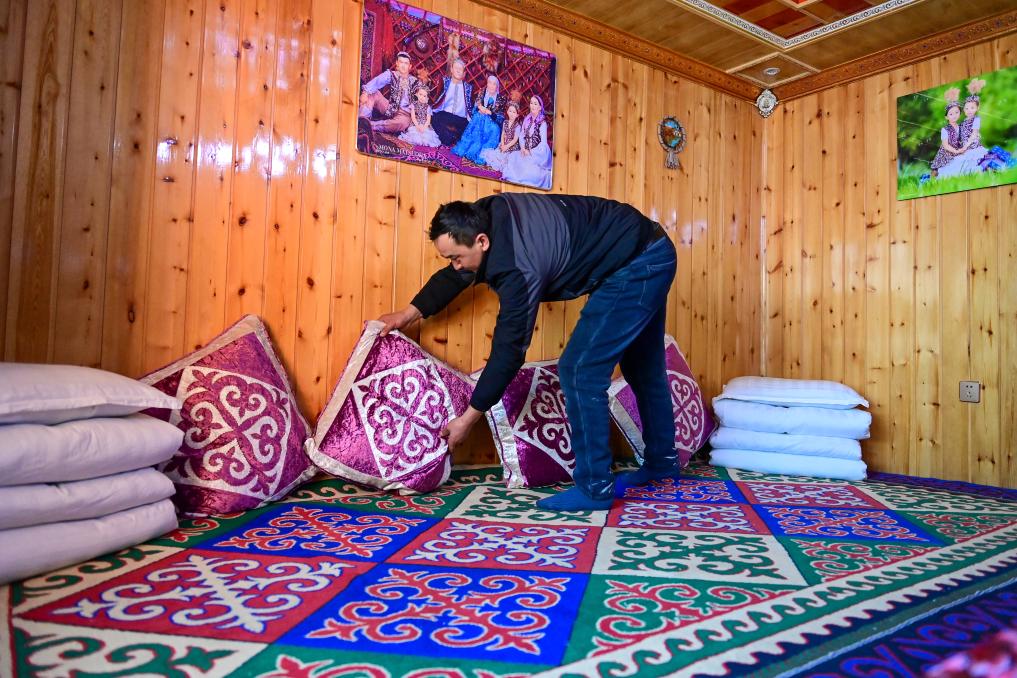 在塔拉特村“马背之家”民宿,正协助妈妈打理生意的阿尔达克·阿扎提告诉记者,自从家里开办了民宿,全家的年收入现在可达10万元,这在以前是无法想象的。元旦和春节假期将近,塔拉特村也即将进入滑雪旅游的一个高峰,目前已经有来自南方的客人预订了明年1月的房间。