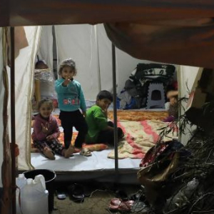 12月18日,在加沙地带南部城市拉法,孩子们在临时避难所休息。新华社发(亚西尔·库迪摄)