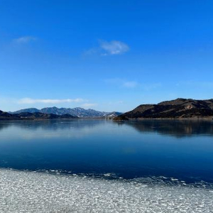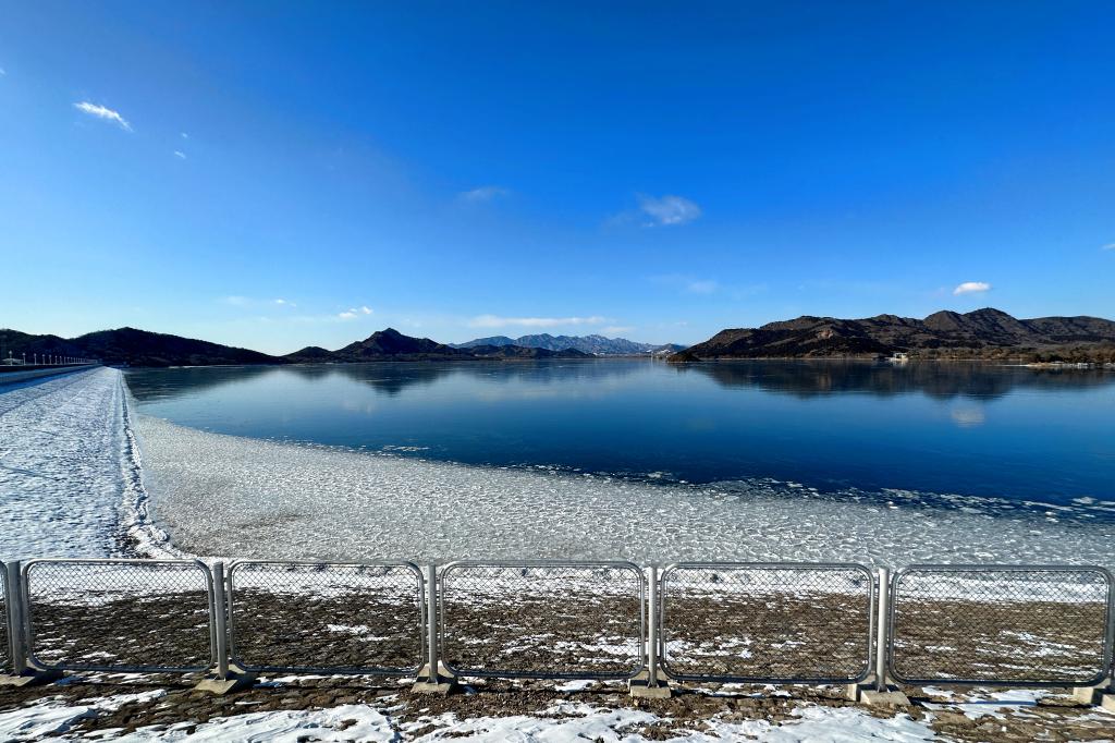 图为雪后的怀柔水库。(北京市水务局供图)