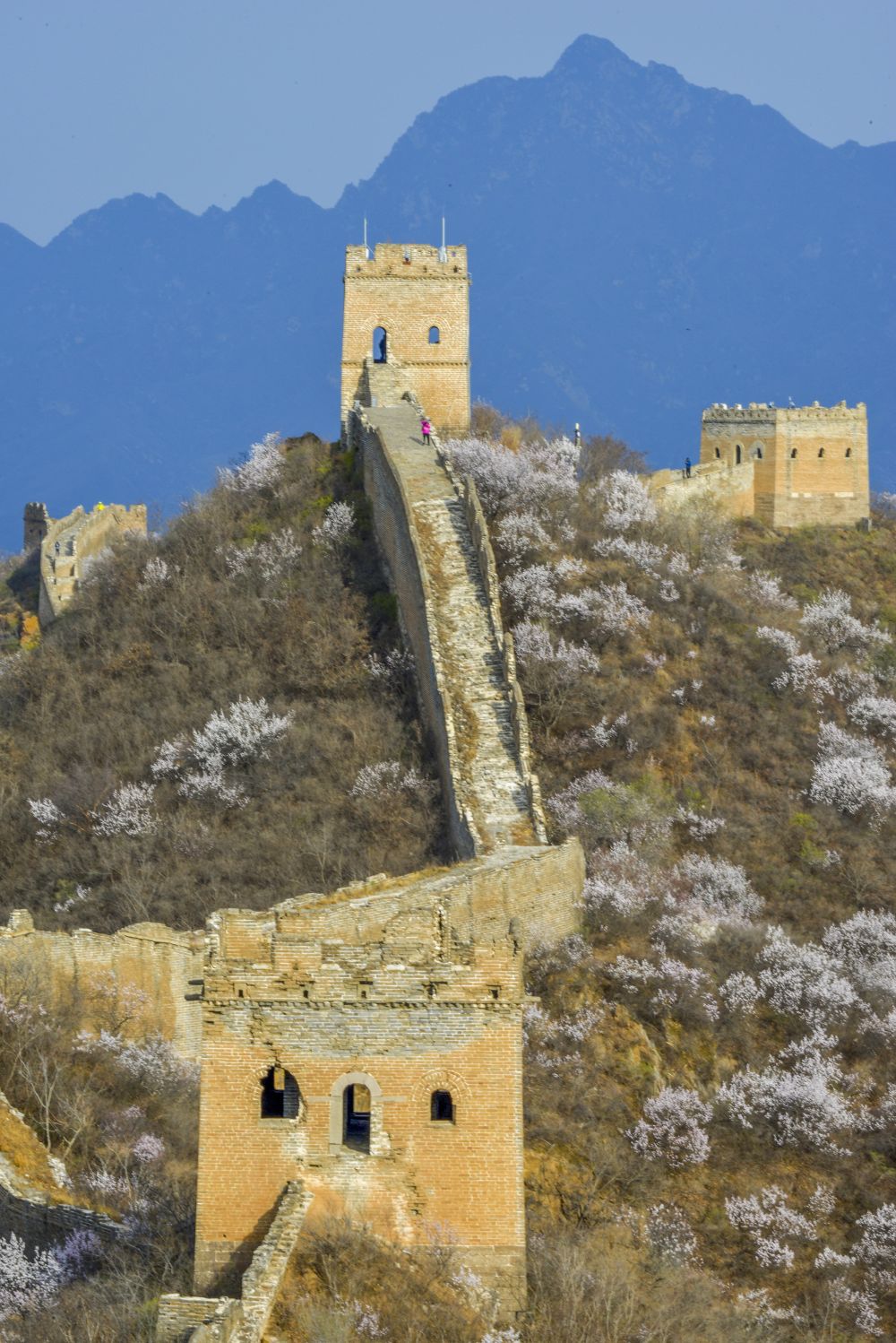 每年清明前后,金山岭长城两侧十万亩杏花竞相开放,金山岭长城迎来拍摄杏花的最佳时间。在一个清晨,我爬上索道梁顶,一朵朵绽放的杏花白如雪、粉如霞,在阳光的照耀下,格外娇艳动人,与沧桑古老的长城交相辉映,成为充满希望的春的画卷。