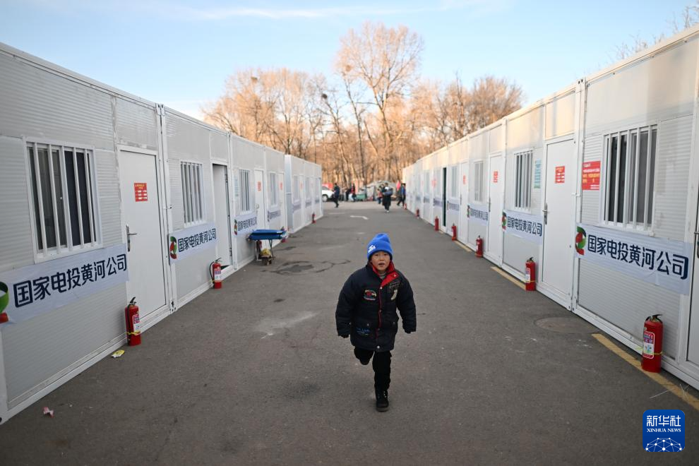 小朋友在青海民和县中川乡金田村临时安置点玩耍(12月26日摄)。新华社记者 张宏祥 摄