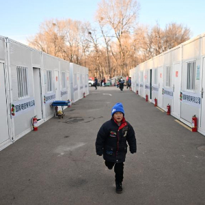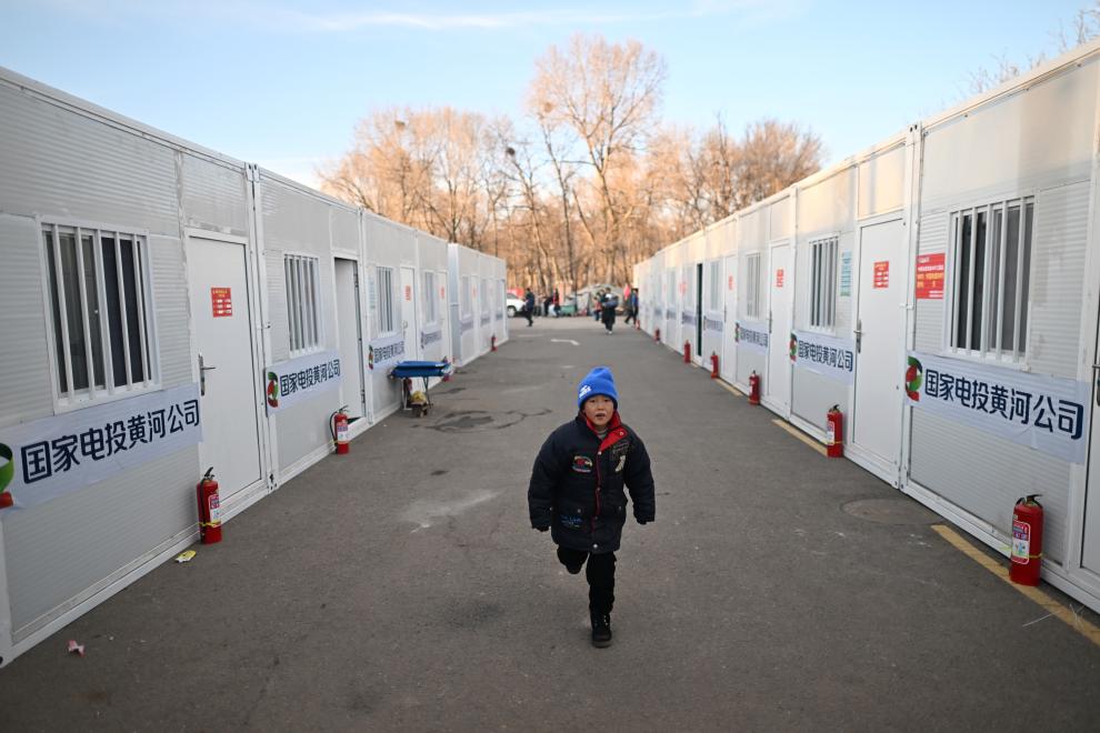 12月26日,小朋友在青海民和县中川乡金田村临时安置点。(新华社记者 张宏祥摄)