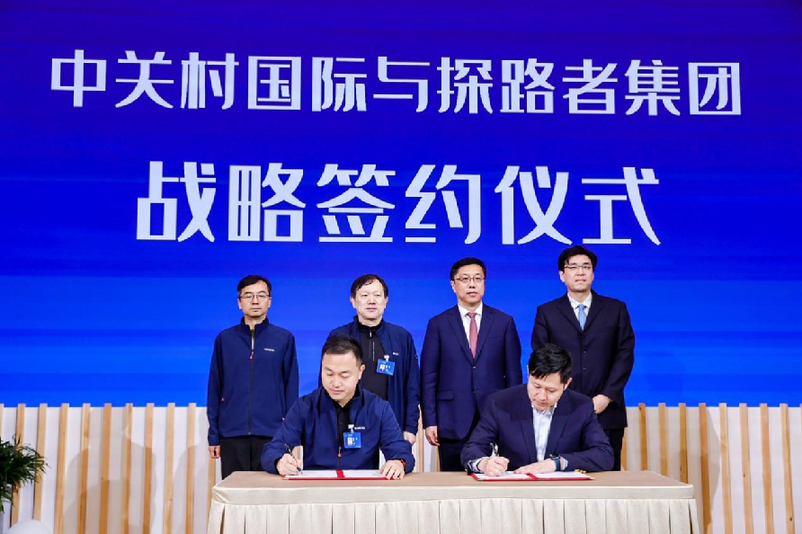 随后,探路者集团和中关村国际签署战略合作协议,将专场推向高潮。双方将在全球范围内开展资源整合,搭建创新网络节点,构建全球化协同创新体系。双方签约代表是中关村国际总经理卢江,探路者集团副总裁、G2 Touch董事长杨树。鉴签人包括中关村发展集团副总经理贾一伟,中关村国际董事长赵小鹏,探路者集团董事长李明,探路者集团总裁何华杰。