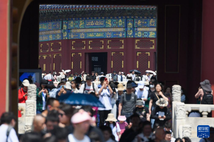 5月2日,游客在北京天坛公园内游览。“五一”假期,文旅市场火热。新华社记者 鞠焕宗 摄