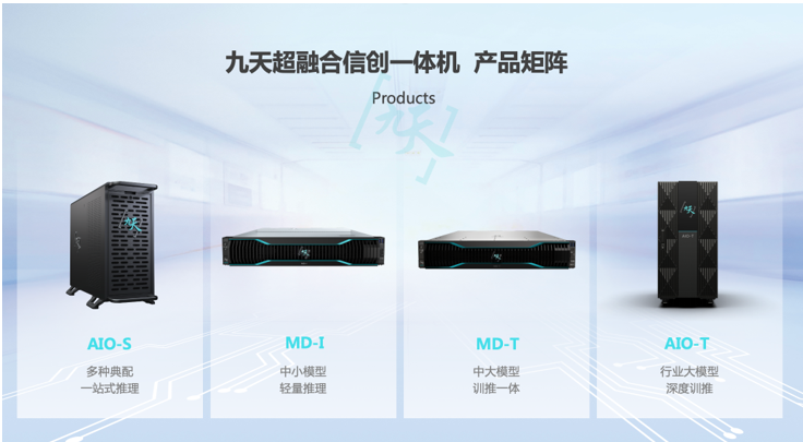 九天超融合信创一体机是中国移动为了打通大模型应用落地最后一公里而研发的一款边端智算产品。该产品采用软硬一体化设计,搭载中国移动自主研发的139亿参数语言大模型以及面向垂直行业的10亿级参数视觉大模型,为行业用户提供了开箱即用的大模型服务,可大幅缩短企业大模型应用开发周期、提升业务开局速度,同时边端私有化部署保障了数据隐私安全。