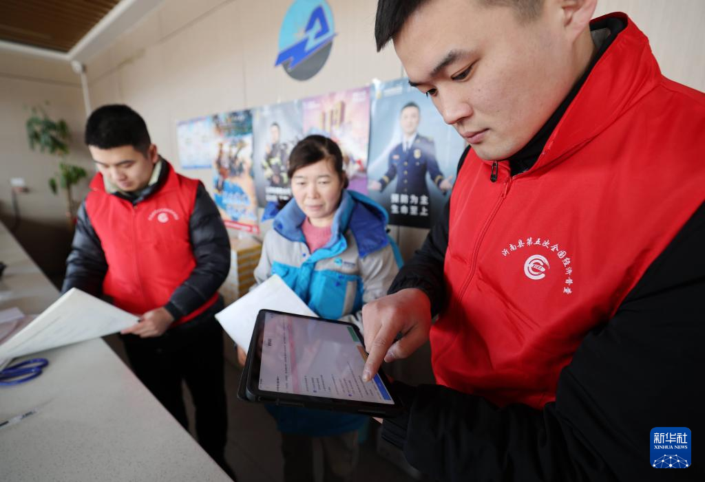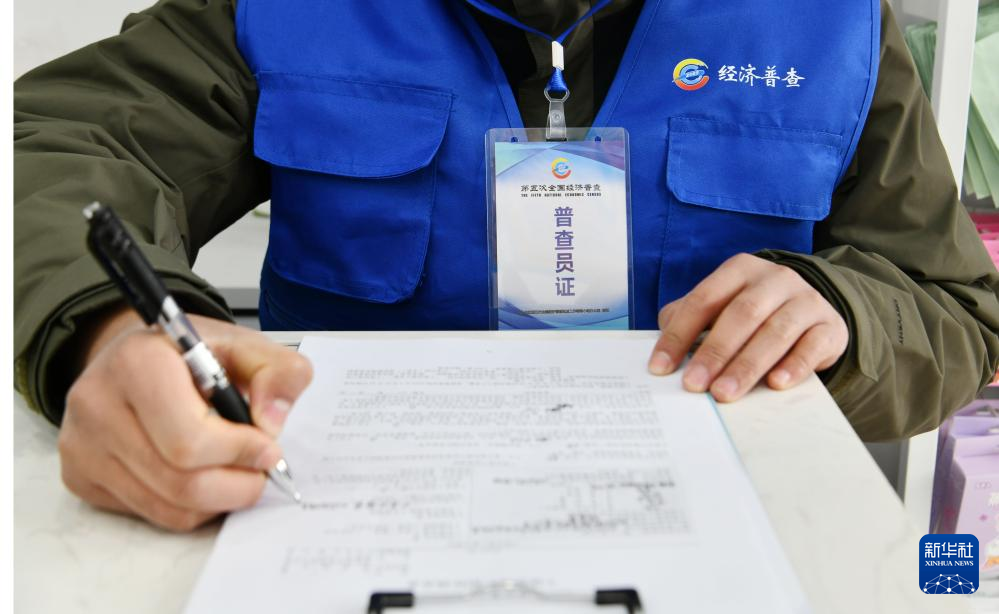 1月1日,在山东省枣庄市台儿庄区运河街道,普查员对经营户进行信息登记。新华社发(贾礼章摄)
