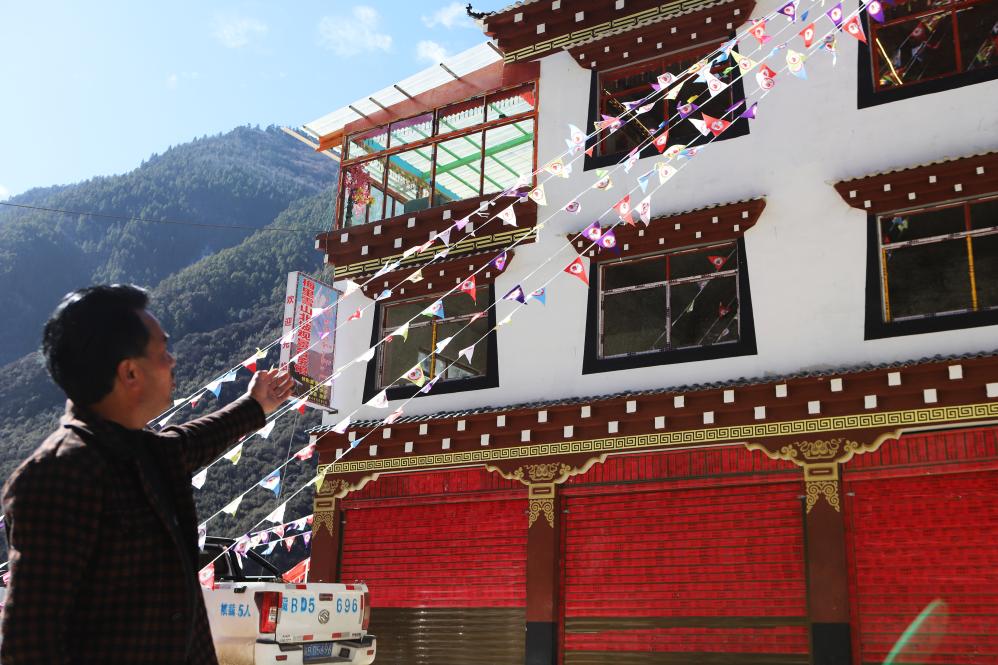 格桑次仁向记者展示自家的新房。新华社记者关明辉 摄