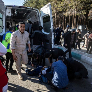 1月3日,在伊朗克尔曼市,医护人员在爆炸事故现场附近抢救伤员。新华社/美联