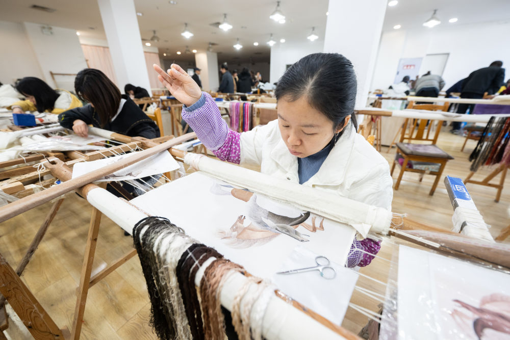 走进万州三峡绣手工艺品有限公司车间,“绣娘”们俯身在刺绣绷架前,捏住桑蚕丝线,双手翻飞间,水墨晕染的色彩和立体形象跃然布上。作为全国对口支援三峡库区项目创办的企业之一,这家公司吸纳包括三峡移民在内的人员就业260多人,还辐射引导500余名乡村“绣娘”。