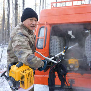寒冬的清晨,机械的嗡鸣声划破了大兴安岭山林间的寂静,林业工人一天的冬季营林作业开始了。油锯手扛着油锯、踏着厚厚的积雪,走在队伍的最前边,他们要负责伐倒林间的枯死木。在他们身后几十米,割灌机手操作机械,修剪着大树周围的灌木、杂树。走在队伍最后的,则是负责捡枝丫的工人们。
