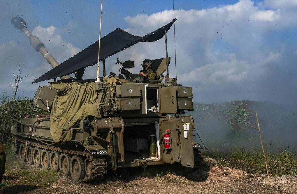1月4日,在以色列北部边境,以军的一门自行榴弹炮向黎巴嫩南部开火。新华社发(阿亚尔·马戈林摄/基尼图片社)