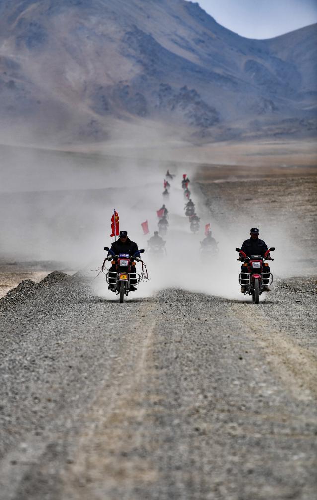 从开始的骑马和步行,到自愿出资购买摩托车参与边境执勤、巡逻,在石角和伙伴们的影响下,参加护边联防队成为当地牧民的荣誉和梦想。每一辆摩托车上飘扬的五星红旗,就是一座座流动的界桩。