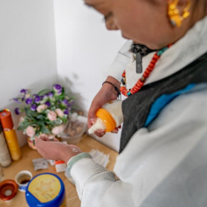1月8日,旦增卓玛给孩子冲奶粉时试温。新华社发(丁增尼达摄)
