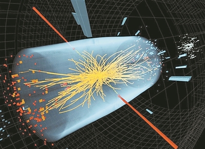 图为通过量子机器学习增加对粒子对撞的理解(艺术渲染图)。