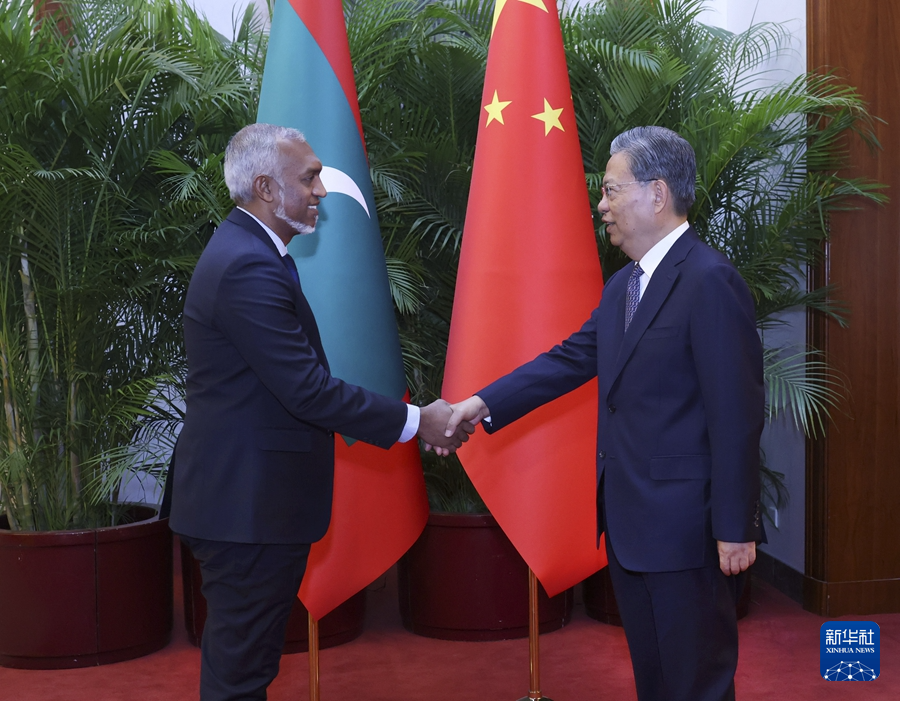 新华社北京1月11日电 全国人大常委会委员长赵乐际11日在北京会见马尔代夫总统穆伊兹。