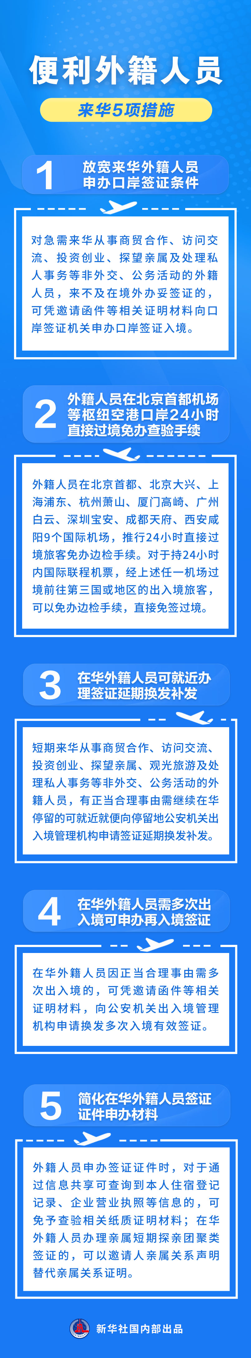 记者1月11日从国务院新闻办公室召开的新闻发布会上获悉,国家移民管理局从当日起正式施行便利外籍人员来华5项措施,进一步打通外籍人员来华经商、学习、旅游的相关堵点,更好服务保障高水平对外开放,服务促进高质量发展。