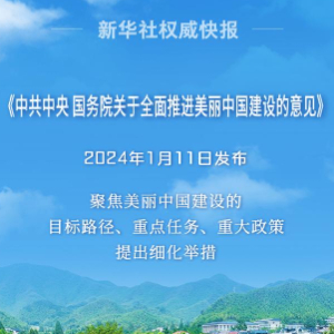 《中共中央 国务院关于全面推进美丽中国建设的意见》1月11日发布。
