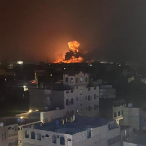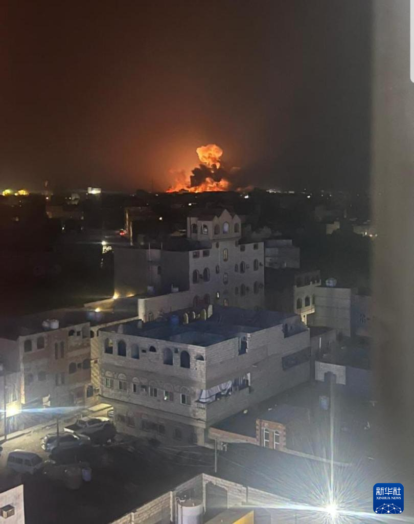 这是1月12日在也门首都萨那拍摄的空袭后的爆炸画面(手机照片)。新华社发