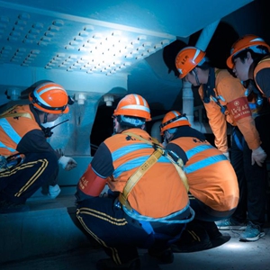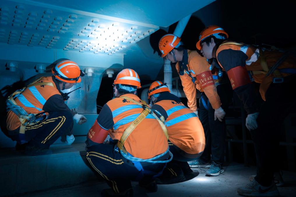 武汉的青年突击队在黄冈公铁两用长江大桥对桥梁支座、阻尼器等进行检查。(共青团中央供图)