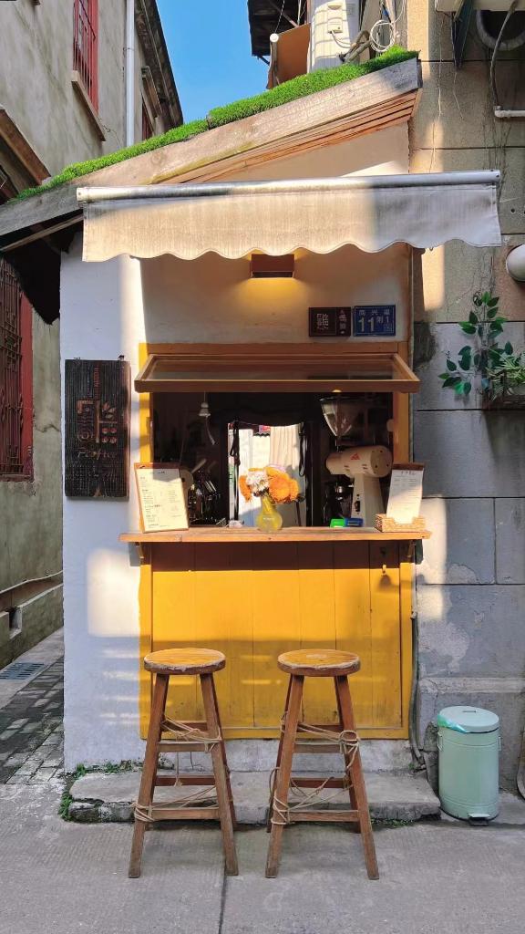 午后阳光透过建筑缝隙照进小巷,位于同兴里中间的一家咖啡店门口不时有拍照、买咖啡的游客。只有4平方米的小店因温暖的装修色调、简洁的门头成为老街的“网红店”。2020年5月,曾从事文案工作的28岁武汉女生陶玥伶接手咖啡店。“老街的闲适氛围吸引了我,街坊邻居和睦,2023年以来游客增多,生意也越来越好。”陶玥伶说。