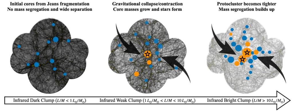 图为大质量原恒星团的演化图景卡通图。(受访者供图)