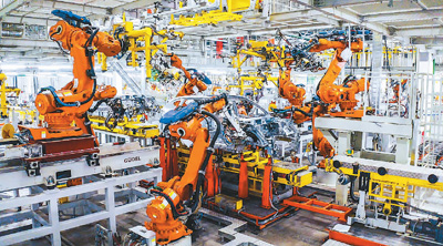 基于数据要素的智能制造大大提高了生产效率。图为一家中国车企的智能制造车间生产场景。
