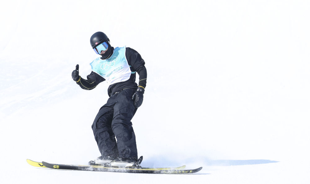 2022年2月9日,挪威选手比尔克·鲁德在北京2022年冬奥会自由式滑雪男子大跳台比赛中庆祝。新华社记者 王婧嫱 摄