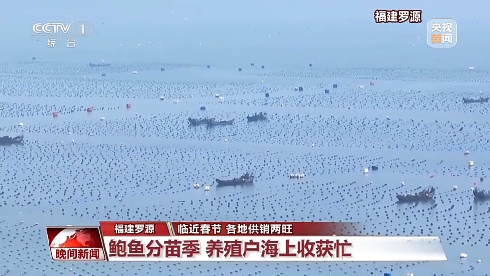 进入腊月,福建福州罗源县迎来了鲍鱼分苗的高峰期。辽阔的海面上纵横阡陌,蓝色浮球下挂着的就是一笼笼鲍鱼。只见渔民们把新鲜的龙须菜,放进笼里,这是鲍鱼最喜爱的优质饵料。而在不远处的海上平台,一些渔民正忙着把鲍鱼按照个头大小,一粒粒分拣装笼,这个过程就是分苗。分完苗后的鲍鱼还会继续养殖一段时间,随后按大小规格,分批上市销售。据了解,罗源县年产鲍鱼10万多吨,年产值达30亿元。