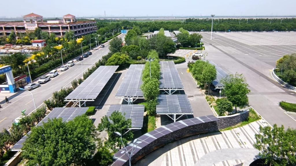 2012年以来,天津生态城能源投资建设有限公司先后建设并运营7处光伏发电、1处风力发电项目。比如,方特游乐场的停车场在2023年又多出一片光伏一体化车棚。不久前,这片分布式光伏正式投入运营,年均发电量达到106万度。