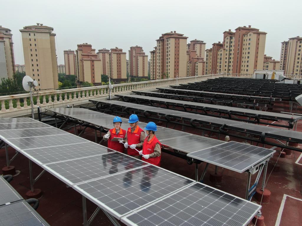 国网天津滨海公司工作人员调试电光热建筑一体化供能系统。新华社发(王立国摄)