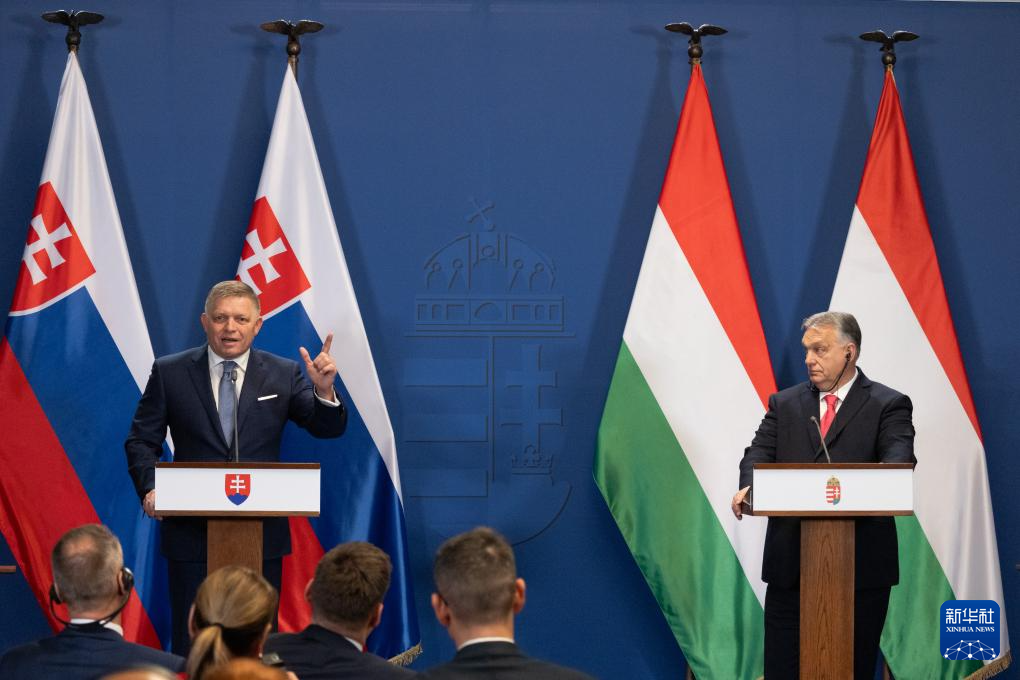 1月16日,在匈牙利首都布达佩斯,匈牙利总理欧尔班(右)与斯洛伐克总理菲佐出席联合新闻发布会。新华社发(弗尔季·奥蒂洛摄)
