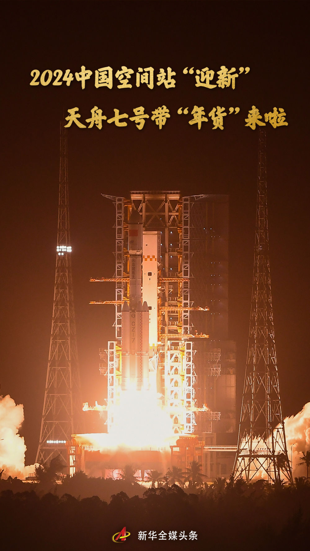 1月17日晚,长征七号运载火箭托举着天舟七号货运飞船在人群期待的目光中直冲霄汉,向中国空间站送出2024年的“新年太空大礼包”。