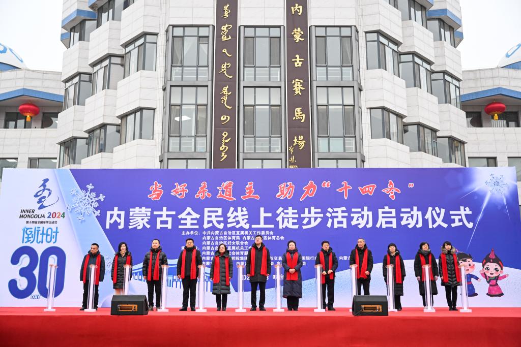 1月18日,“当好东道主 助力十四冬”内蒙古全民线上徒步活动启动仪式现场。新华社记者 贝赫 摄