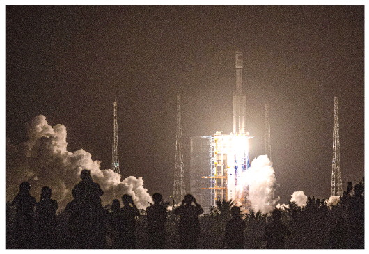 夜幕降临,万籁俱寂,星辰点点。突然,一道火光划破黑暗、直冲云霄,轰鸣声震耳欲聋,海滩上的人们仰望着夜空,目光紧紧地跟随着烈焰的轨迹。不一会儿,强烈的火光逐渐淡成漆黑夜晚里的一颗星星,融入浩瀚苍穹。