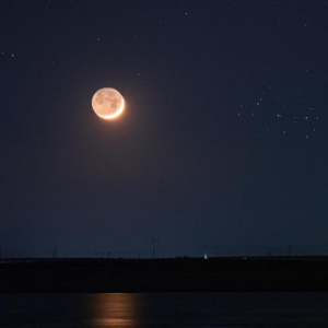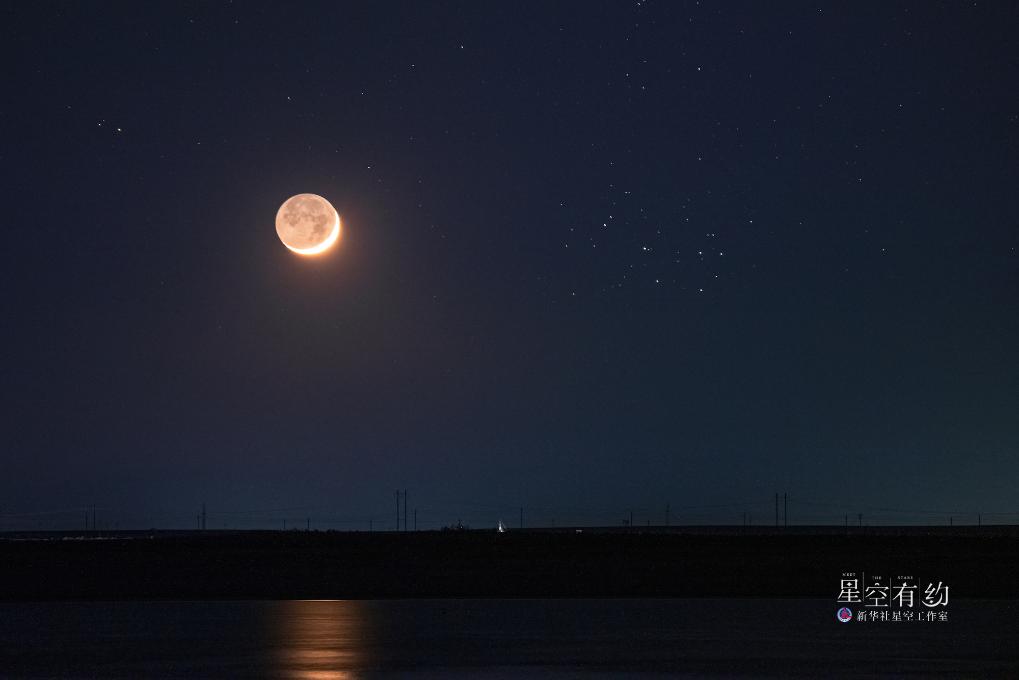重庆星空摄影爱好者戴建峰2023年4月22日在新疆克拉玛依拍摄的月伴昴星团。(本人供图)