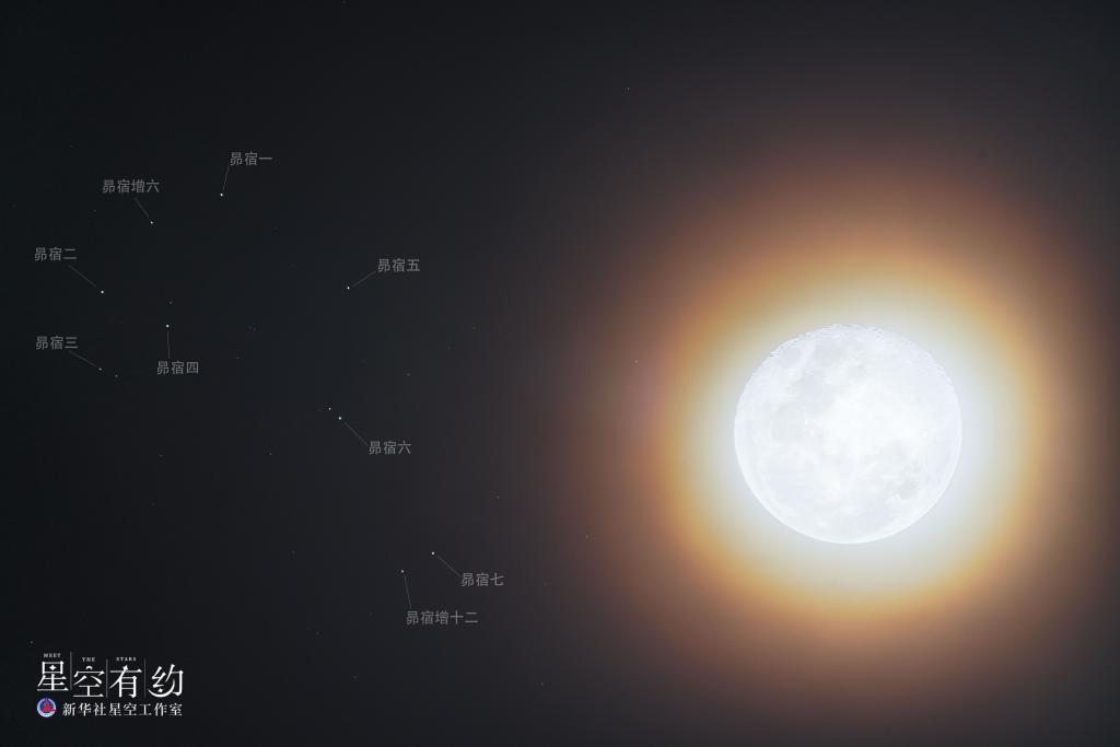继1月14日傍晚与土星相合之后,月球继续自己的“巡天之旅”,20日傍晚,运行至昴星团旁边。当日昴星团会在傍晚时出现在东方天空,虽然在晴朗的夜空用肉眼就可以看到它,但还是比较暗淡,公众需要仔细寻找。随着时间的推移,月球与昴星团逐渐靠近,23时来到“合”的时刻,二者之间的角距离不到1度(近乎于2个满月视直径大小),此时,地平高度较高,利于观测。