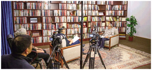 “中国图书馆界重要人物专题”记忆资源共建共享项目对熊道光(右)进行访谈。国家图书馆供图