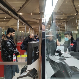 1月2日,北京边检总站移民管理警察为入境旅客办理边检手续。(北京边检总站供图)
