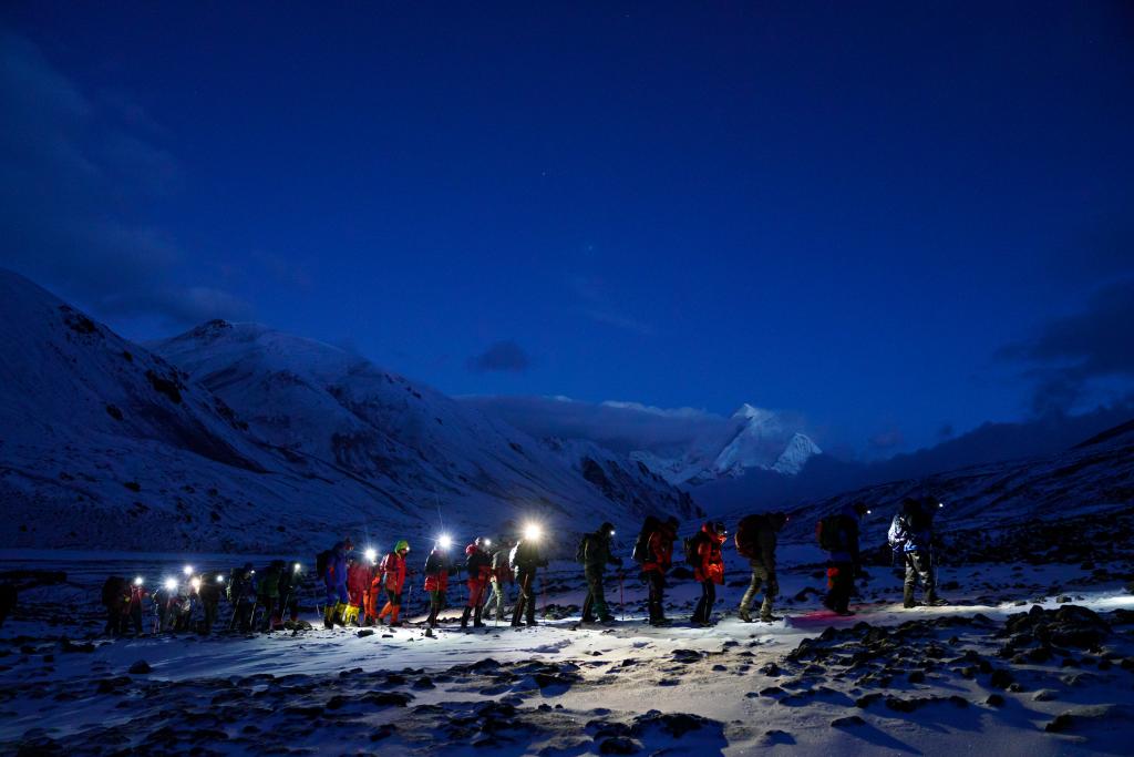 ↑2023年5月3日,登山爱好者在凌晨出发,开始攀登海拔6010米的洛堆峰。当日,洛堆峰登山探险活动在西藏拉萨市当雄县顺利落幕,共有来自全国各地的52名登山探险爱好者尝试登顶洛堆峰,其中43人成功登顶。
