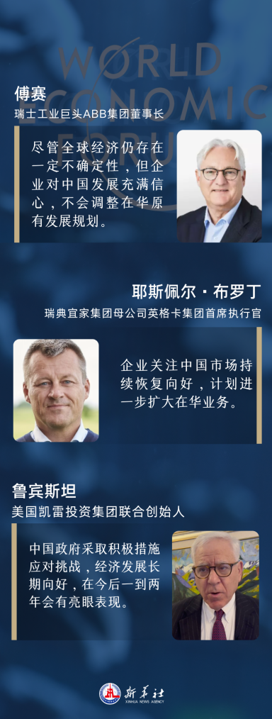 世界经济论坛2024年年会于1月15日至19日在瑞士达沃斯举行,来自全球2800多位政界、商界、学界和媒体代表深入探讨世界经济的未来。出席年会的企业家和观察人士日前纷纷表示看好中国经济前景。