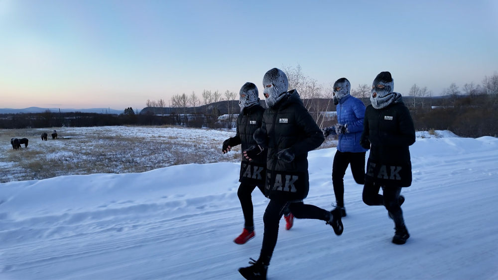 这里的冷没去过的人很难想象。每次冬天晨跑,队员们身上冒出的热气都会结成白霜,挂在护脸上、裤子上……尤其是护脸,跑着跑着就变成了一个“雪头盔”。