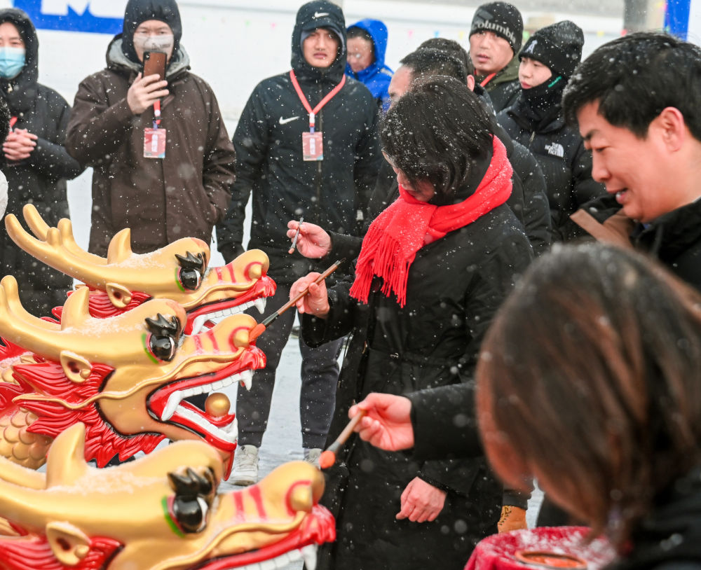 本次活动设置冰上教学体验、冰壶、个人绕桩等项目,让观众亲身体验冰上运动的乐趣。现场还有舞狮文艺表演、龙舟点睛民俗展示等文娱活动。