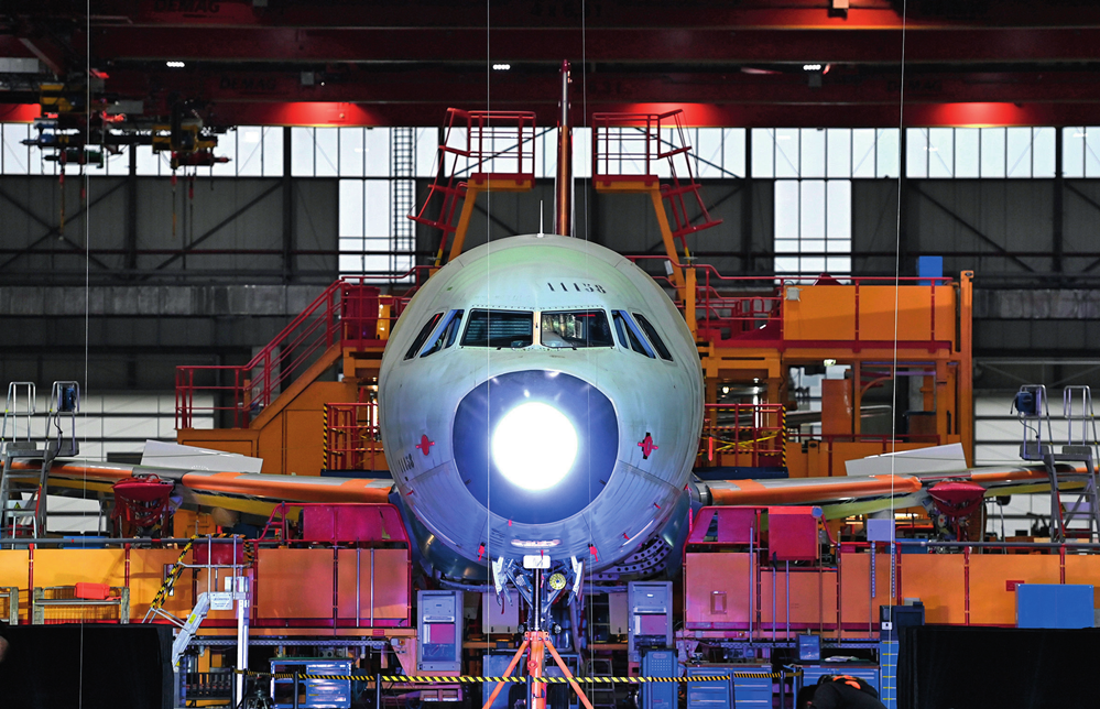 空客天津总装线的首架空客A321飞机上线总装(2022年11月9日摄) 赵子硕摄/本刊