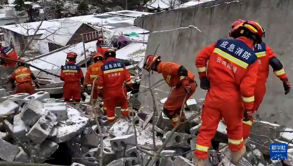 1月22日在云南省昭通市镇雄县塘房镇凉水村拍摄的救援现场(视频截图)。新华社发