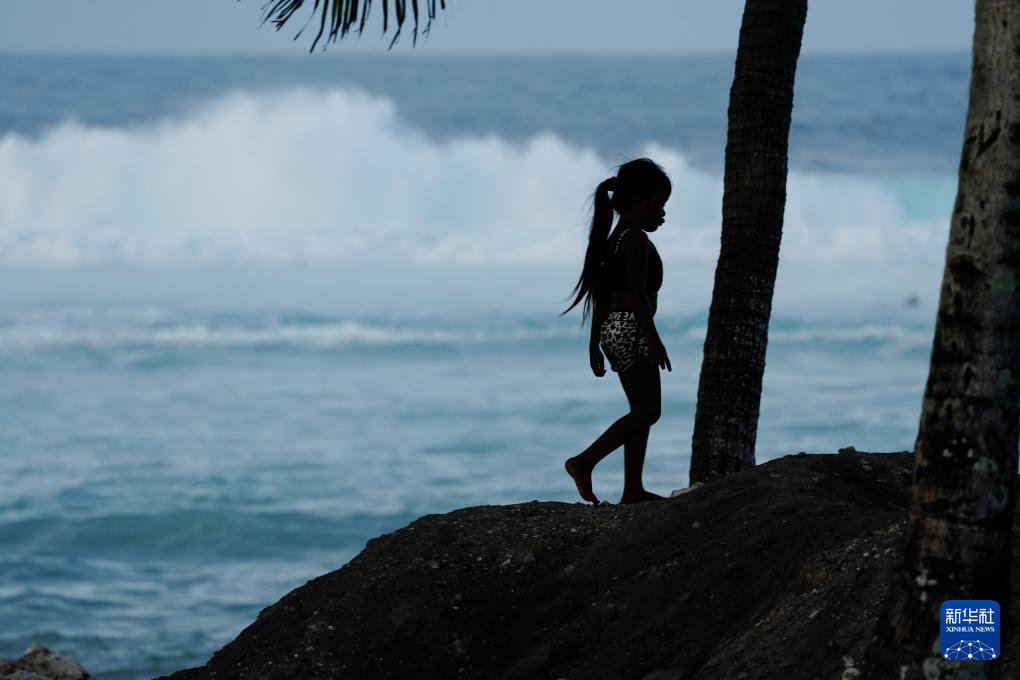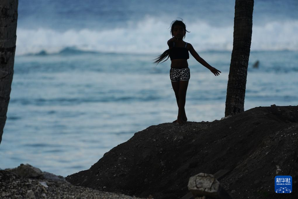 1月21日,小女孩在瑙鲁一处海滩前玩耍。新华社记者 王申 摄