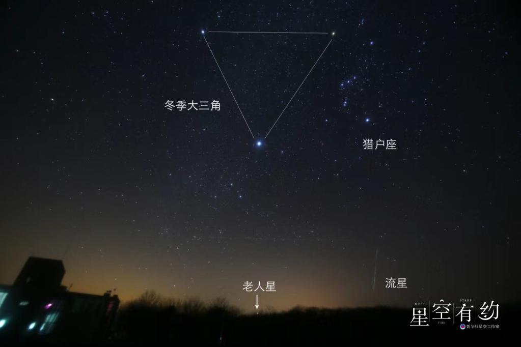 在天狼星的南方,有全天第二亮的恒星老人星,呈青白色。王科超介绍,虽然老人星很亮,但大多数北方观察者却看不见它,南方公众可在冬季午夜前后,尝试向南方低空寻找这颗星。
