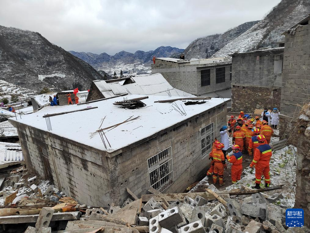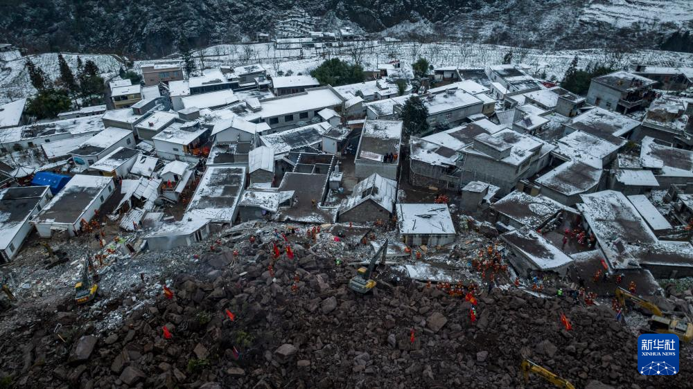 1月22日在云南省昭通市镇雄县塘房镇凉水村拍摄的救援现场。新华社发