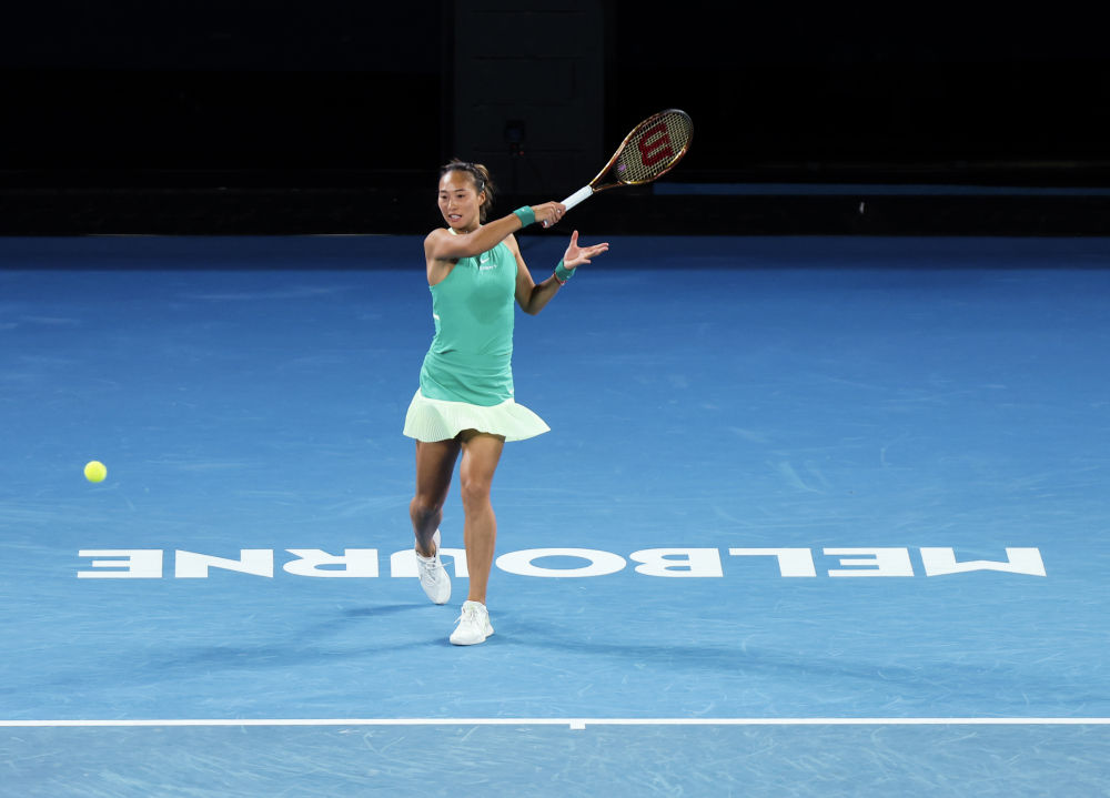 1月22日,郑钦文在比赛中回球。新华社记者 马平 摄